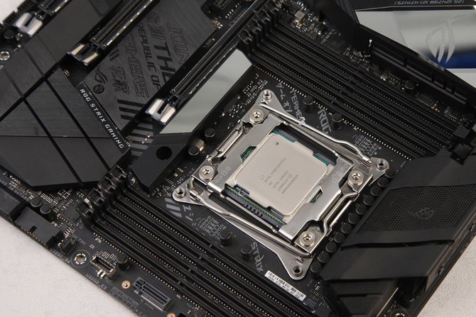 英特尔LGA2066平台的主板选择了华硕ROG STRIX X299-E GAMING II,这款主板定位于中高端,为优异的电竞游戏爱好者打而造。这款主板将时尚前卫的电竞图腾与利落的线条设计完美的融合在一起,再配合上华硕独家的AURA RGB灯效,点亮后非常炫酷。