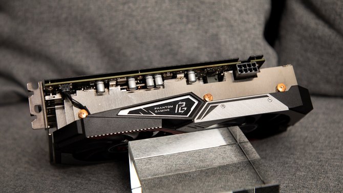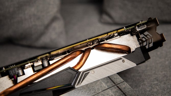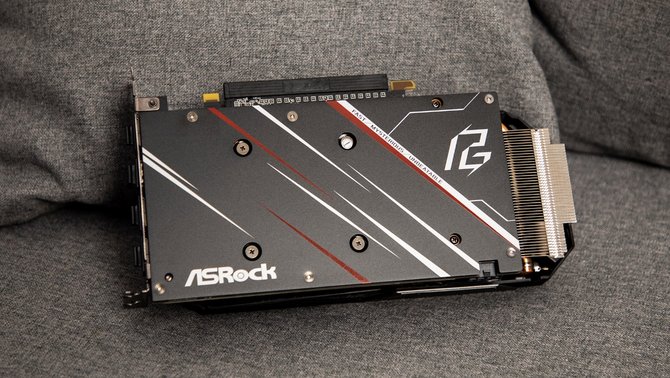 为了保证散热,华擎的这款显卡的散热器厚度非常大,拿在手里重量十足,同时显卡顶部还有RGB LED灯光,可以和主板灯效进行联动。