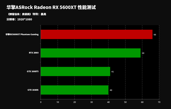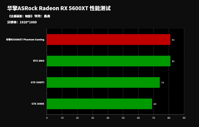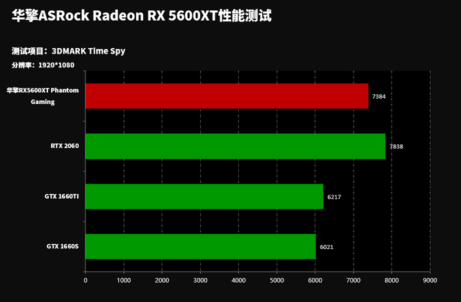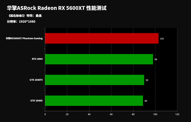从游戏性能来讲的话,华擎RX5600XT Phantom Gaming显卡性能全面领先GTX 1660TI、GTX 1660S显卡以及RTX 2060显卡,表现非常出众。