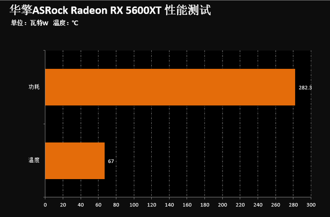 最后在功耗方面的话,这款显卡在满载功耗的时候,整个平台的功耗为282.3W,而满载时候的温度为67℃。