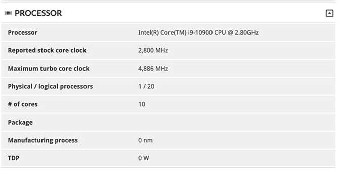 值得一提的是,这次Geekbench4曝光的CPU也非常有看点,识别为酷睿i9-10980HK,规格8核16线程,基础频率3.1GHz,加速频率高达5GHz,这也应该是Comet Lake-H高性能移动版中的旗舰型号,接替酷睿i9-9980HK。