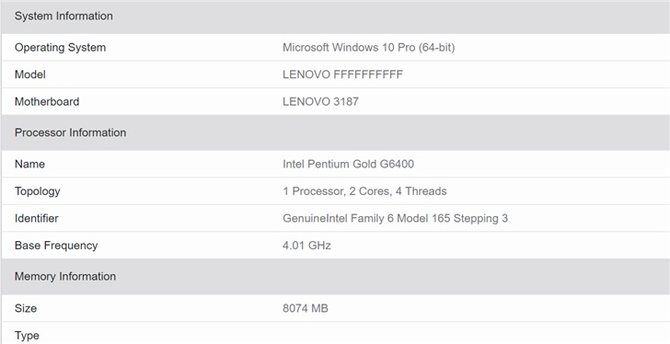 目前,共有两款G6000系列处理器在3DMark数据库中曝光,分别为G6400和G6600。