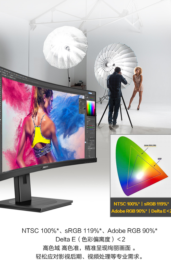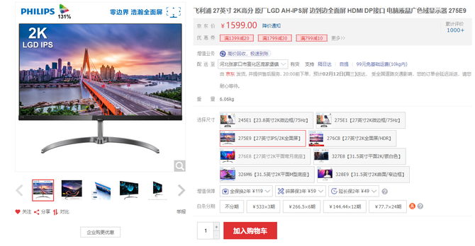 首先第一款是飞利浦的275E9显示器,这款显示器采用的是原厂LGD AH-IPS屏幕,可视角度高达178°,色彩更加饱满,并且拥有131% sRGB色域和114%NTSC色域的加持,不论是日常办公还是专业修图,均能够带给用户较好的视觉体验。