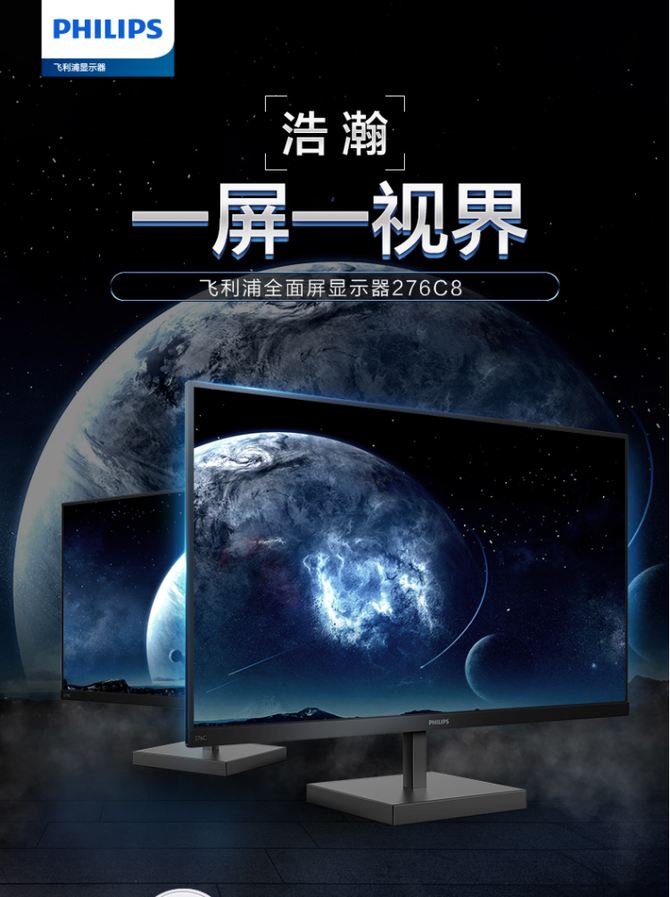 在线学习 多场景应用全面手 飞利浦276C8高色域浩瀚显示器