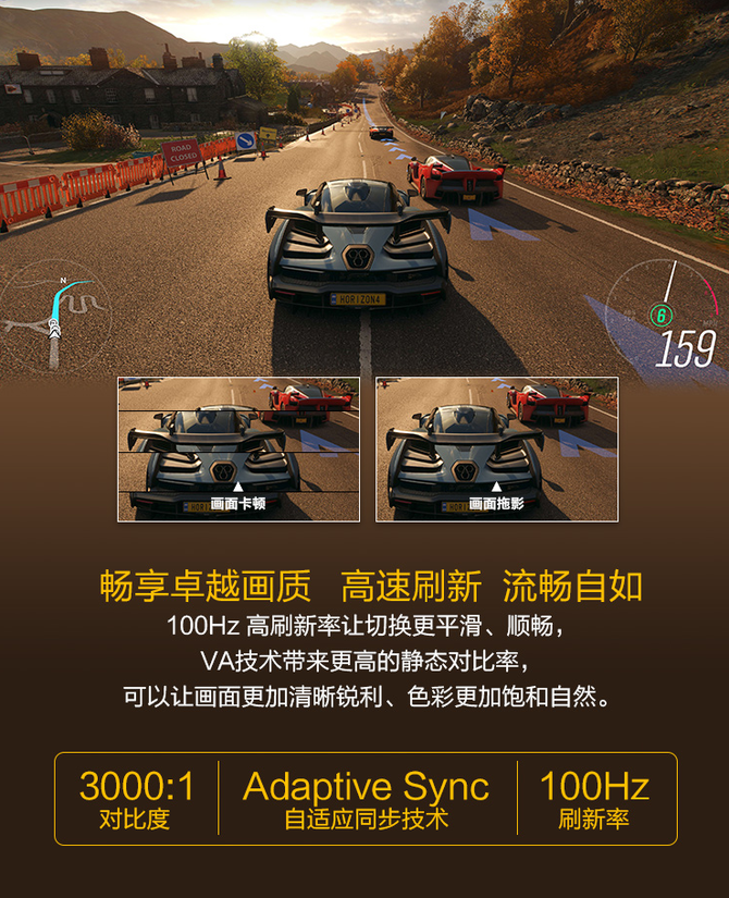 另外这款显示器采用了100Hz的高刷新率设计,让我们在进行电竞游戏的时候能够享受较好的视觉体验,同时这款显示器还有环境光感应技术,让显示器在不同的光线环境下依旧能够保持最好的显示状态。