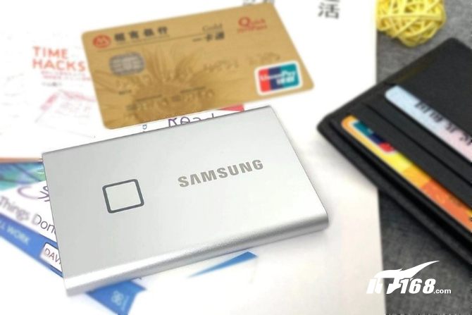 T7 Touch采用更加轻质而耐用的铝合金材质制成,产品规格为85×57×8.0mm,与我们常用的信用卡一般大小,硬盘轻至58g,跟一支口红差不多重量,装在口袋或者旅行时放在双肩背包的角落里,一点儿也不会产生负担。而坚固的金属外壳,内部无可移动部件,即使从2米高处跌落,也不会轻易被摔坏,减少硬件损坏的同时也保护了数据的安全,而且,三星还提供了三年有限保修,足以让你放心使用、无后顾之忧。