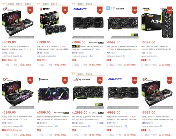 首先,我们来看一下旗舰级显卡市场,RTX 2080Ti的价格相对比较平稳,除了华硕、技嘉、微星三家之外,其他的厂商都有不同幅度的优惠,500-2000元价格不等,旗舰卡的降价空间不得不说还是大啊!不过对于选择优异游戏显卡的用户来讲,该买了已经都买的差不多了,这波降价,也能吸引一部分想要体验4K游戏画面的玩家。