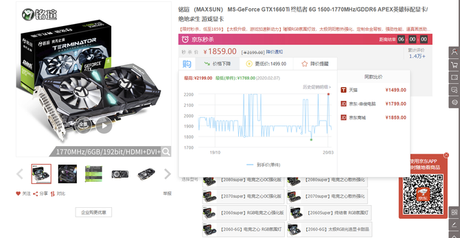 接下来我们就来看看一下1500-2000元档的显卡,这个价位的显卡,目前在售的N卡更多,有GTX 1660、GTX 1660TI、GTX 1660S,从性价比的角度来看的话,这类显卡价格合适、性能同样能够满足绝大部分的日常使用,所以销量也是非常不错的。