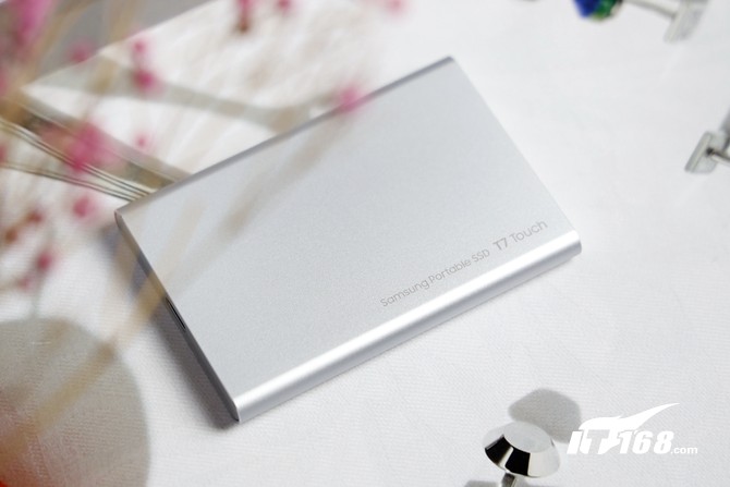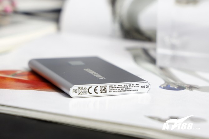 从2005年的T1系列诞生开始,T1主打的都是商务、专业领域,但是其轻薄、精致的外观却受到众多消费者喜爱。所以全新的T7 Touch在人群定位上,模糊了专业和个人的界限,更加适合大众“口味”。外观设计方面,精美时尚的铝合金材质,既轻质又耐磨,使得其整机仅有58g,还不及一个手机的一半重量。正面是SAMSUNG标识,以及一个带有LED动感光圈的指纹识别模块。细腻的磨砂质感,仅有信用卡大小的外型,留给我深刻的印象。