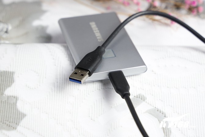 T7 Touch提供了USB Type-C-to-C和USB Type-C-to-A两种规格的数据线,用户可以根据自己设备的配置使用,由于该硬盘支持USB 3.2 Gen 2接口,所以如果您的设备正好也有此接口,那么,T7 Touch的数据传输速度一定令你刮目相看。