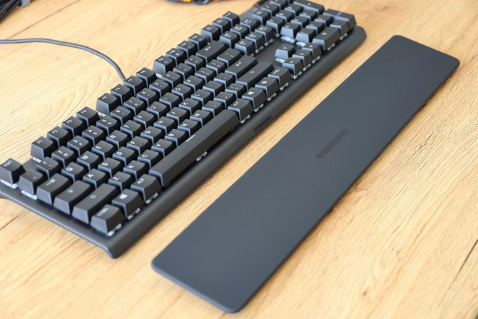 此外,这款键盘还搭配了一个磁吸附腕托,表面采用柔软的硅胶材质,舒适还不打滑,带来更舒适的打字体验。