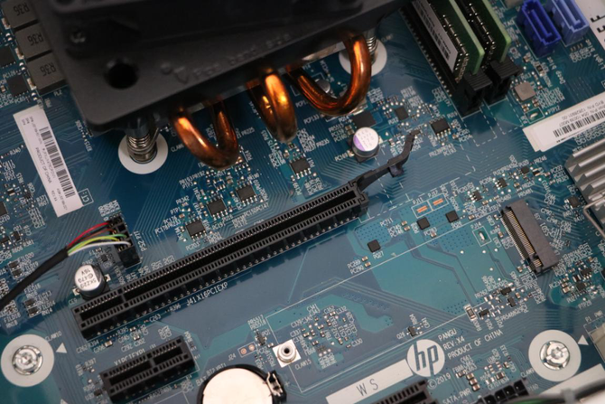 主板PCB为蓝色(面向企业用户发售的产品主板PCB为红色),预留了一个M.2插口和标准PCIe插槽,用于后期升级加装独显和固态硬盘,显得非常人性化。