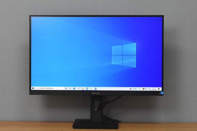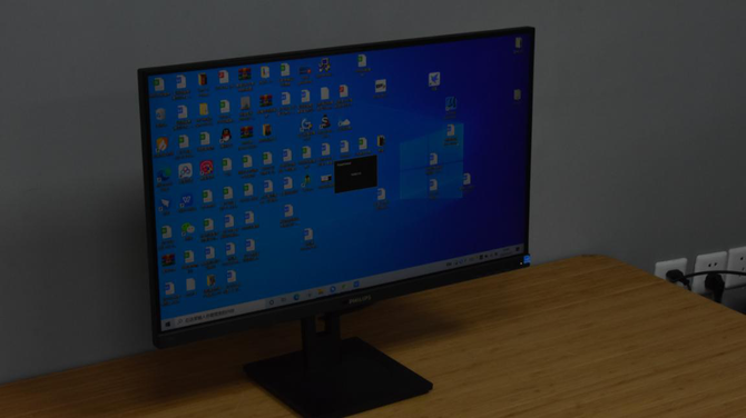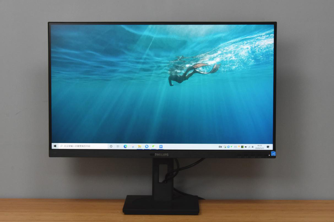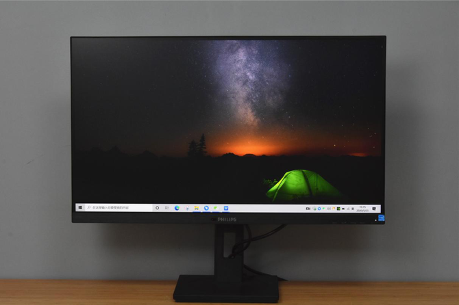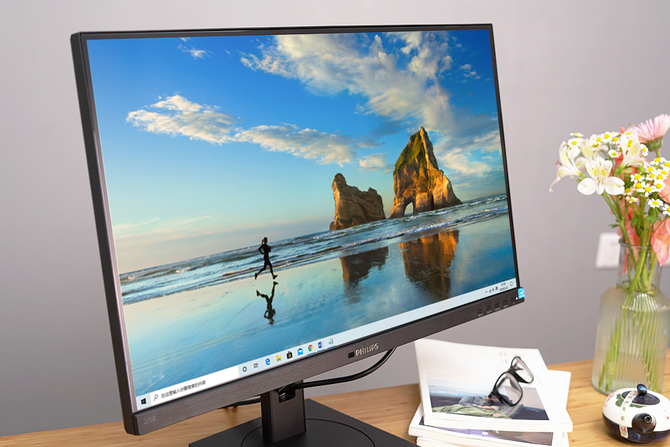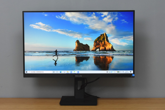 飞利浦275B1N显示器的显示效果实拍图,显示Windows 10系统自带的高清壁纸,效果不错。