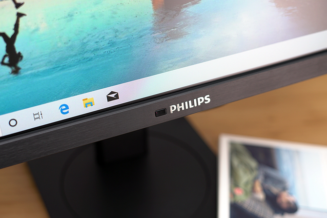 显示器的下边框设计的也非常窄,正中间的飞利浦英文LOGO“PHILIPS”彰显了身份和辨识度。在LOGO的左侧,则内置了支持PowerSensor睿动光感技术的人体感应器,能够通过传输和接收无线红外信号来确定用户是否就位,通过LightSensor功能可自动调节屏幕亮度,做到高效办公与智能节电的平衡。