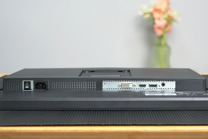 飞利浦275B1N的机身底部,提供了一个DVI–D接口,一个DisplayPort 1.2接口、一个HDMI 1.4接口,以及一个3.5mm耳机接口,兼容性极强,能够连接包括笔记本、台式机、游戏机、耳机等各种音视频设备。而在电源插槽的外侧,则有一个物理开关,长期不使用时能够做到彻底断电。