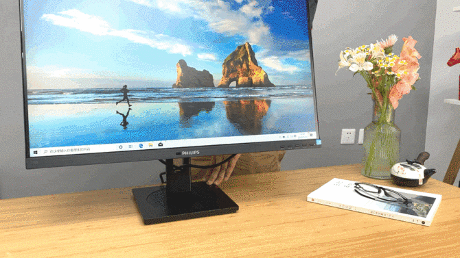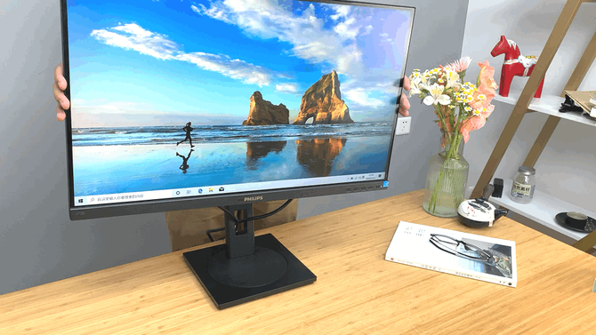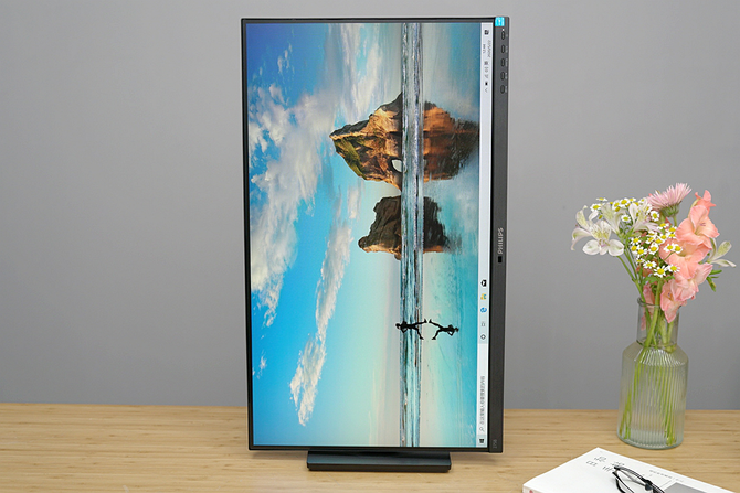 对于文字和网页浏览的办公需求来说,竖屏状态下显示内容要比横屏更多,因此飞利浦275B1N也可在横竖屏之间自由切换,下面的动图为演示: