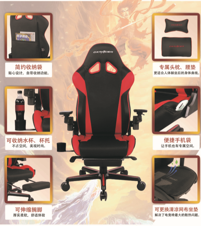 DXRACER迪锐克斯手游椅还具备极强的扩展性,可加装杯托、搁脚凳等组件,扩展无限可能,让游戏娱乐变成一种生活享受。作为一款高阶手游椅经过人体工程学优化后,适合长时间使用,不同的布局享受舒适的手游体验。