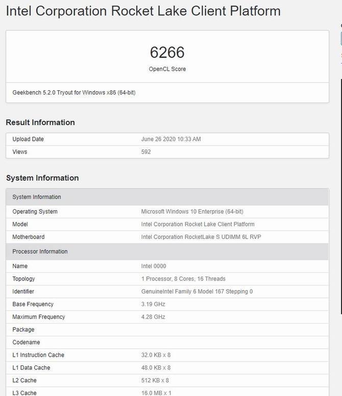 英特尔在今年上半年推出了代号为Comet Lake-S的第十代酷睿处理器桌面版,不过根据此前的爆料,第十一代酷睿桌面处理器Rocket Lake-S的进度也非常快,很可能会在今年年底或明年年初正式发布。目前,在Geekbench5数据库中,已经有了Rocket Lake-S处理器的基准性能测试流出,从细节中我们可以对新品进行下简要分析。