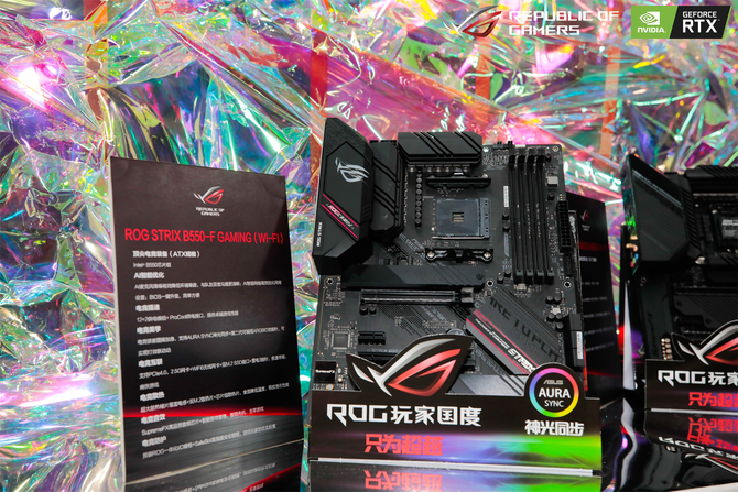 现场还展出较新上市的华硕B550系列主板,包括潮流电竞装备ROG STRIX B550-F GAMING(WI-FI)主板,以及B550世界内存超频纪录缔造者ROG STRIX B550-I GAMING主板。