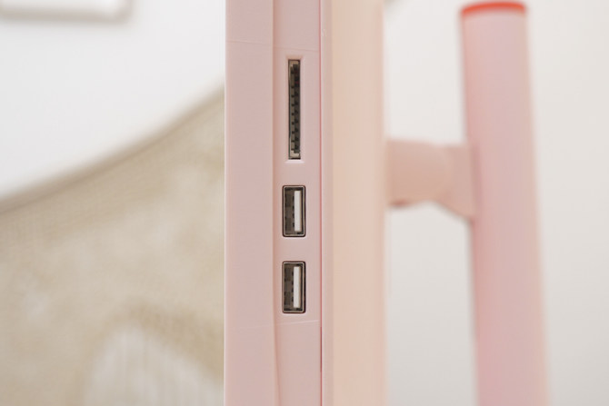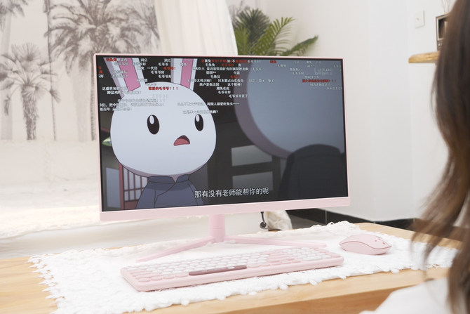 粉粉嫩嫩的颜色直接击穿了我的少女心。超薄的设计也很卡哇伊,同时一体机的属性也让桌面没有了线材的烦恼,我真的超超超级喜欢这个外观。