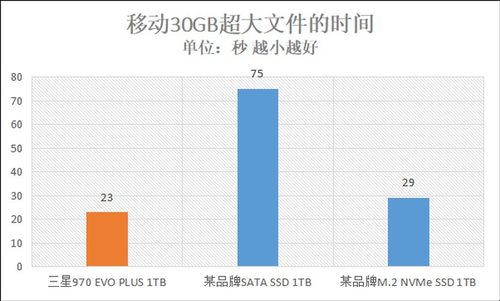 从上图的结果中我们可以看到三星970 EVO Plus所花的时间最短,只有23秒,能够持续高速的传输大文件1G的DRAM功不可没。但是如果传输更大的文件,将缓存占满的话文件传输速度也会下降,不过根据我的使用情况来看,三星970 EVO Plus即便因为缓存占满降速,速度也有SATA SSD的两倍,而且对大多数玩家来说,实际情况中并没有传输巨大文件的场景。