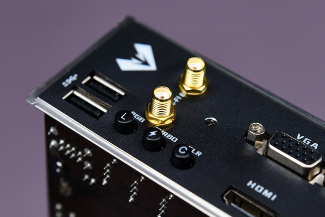 值得注意的是,铭瑄B460M电竞之心还在I/O区域提供了三个按键,分别是RGB、Turbo以及CLR,其中Turbo按键据说可以解除英特尔桌面处理器PL1与PL2的限制,让处理器获得更完整的性能发挥,针对这块我们在后面会给大家解读。