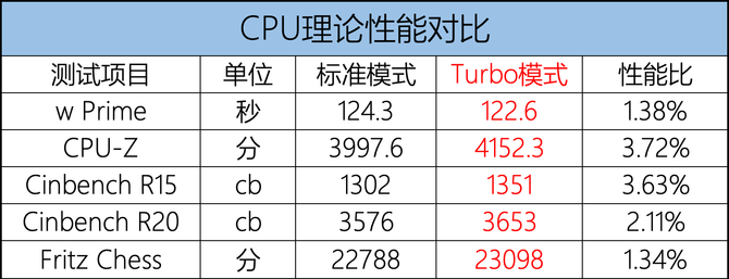 此外,我们也测试了Turbo模式下的成绩,对比标准模式如下: