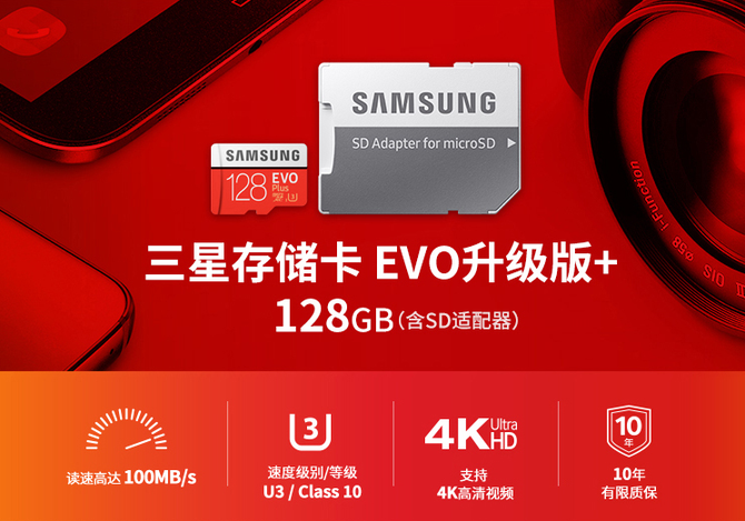 如果你经常使用微单或者单反拍摄视频,还可以选择使用TF卡+SD卡适配器进行转化。比如三星的EVO Plus TF卡,就能够满足更多数码设备的使用。在品质上,这款SD还支持10年的质保,工作温度可以在-25℃至85℃之间运行,基本满足普通群众使用内存卡录制视频的所有环境。