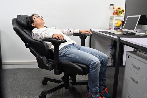 为了给使用者提供更丰富的坐感体验,迪锐克斯Master大师椅的靠背可进行多角度调节,最大155°的躺角搭配15°的逍遥角度,基本可以实现平躺休息的需求。此外,无论是我们在玩游戏、看电影或其他场景时,这款椅子都能提供一个舒适的角度。