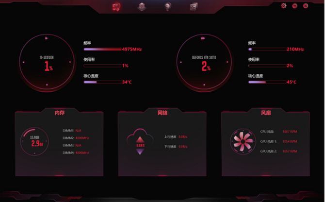 显卡的光效我们还可以在iGame Center中进行调节,除了光效之外,软件内还有各种显卡信息监测,界面简单明了,非常容易上手,可玩性十足。