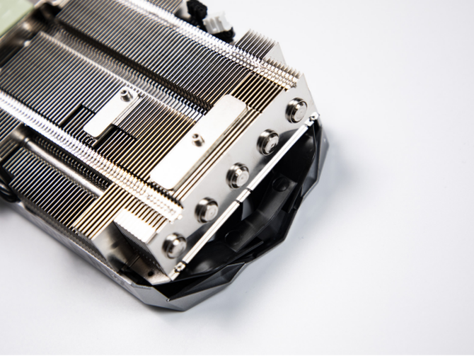 显卡使用了一块全覆盖的金属拉丝背板,保证整块显卡的强度,有效提升整块显卡的散热,同时拉丝工艺的加持,质感表现出众。