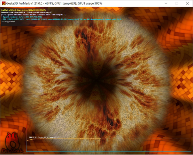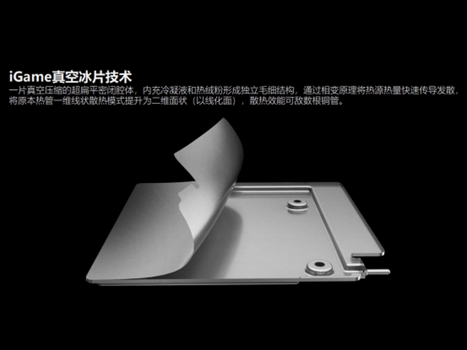 首先是散热器的部分,散热器采用了全覆盖式的散热模组,底座使用了iGame真空冰片技术,搭配5根纯铜散热管,提升热量传导效率,经过我们的实际测试,显卡满负载拷机时候的温度仅为63℃,散热性能非常出色。