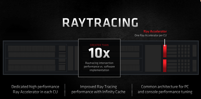 早在很久之前,AMD就放出消息,光线追踪在技术层面上实现并不是很难,AMD有实力让显卡在游戏中实现实时的光线追踪效果,在全新的RX 6000系列游戏显卡中,AMD加入了光线追踪技术,在显卡内部设计了专门用于实现DircetX Raytracing的独立单元,那就是Ray Acceletators,也就是光线加速器,通过着色器发出光线追踪的请求,交给光线加速器进行处理器,实现边界交叉测试和三角形交叉测试,并且利用基于BVH的算法进行判断,将反馈结果进行渲染之后输出,让游戏实现媲美电影级的光影特效。