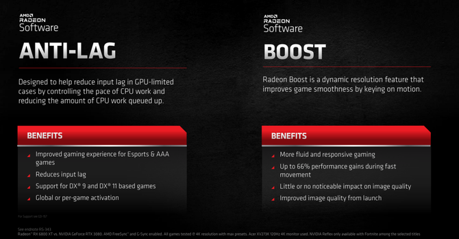 本次AMD全新的RX 6000系列显卡还加入了Infinity Cache技术,即便显卡采用了GDDR6显存,显存位宽为256bit,但是确实384bit GDDR6的2.7倍,功耗降低10%,这项技术能够同样让显卡性能大幅提升的同时还有效降低功耗。
