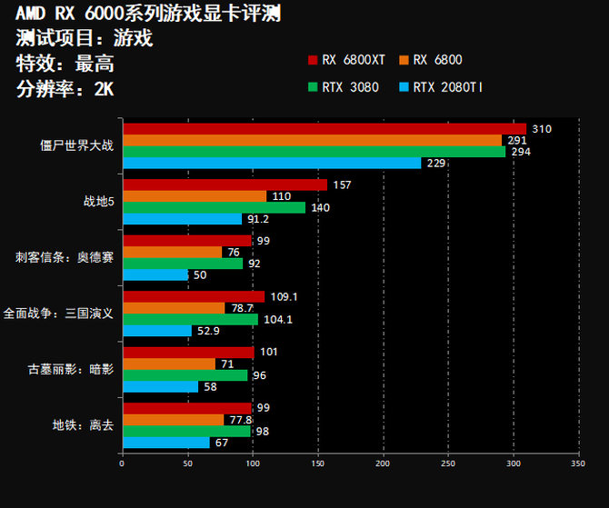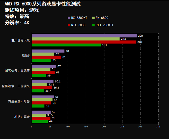 在游戏性能方面,AMD RX 6800XT基本可以在4K分辨率畅玩各种类型的3A大作,同时RX 6800则可以在2K分辨率下畅玩各种类型的3A大作和部分4K分辨率的3A大作,在游戏帧数方面,AMD RX 6800XT全面领先RTX 3080显卡,并且RX 6800则全面领先RTX 2080TI,整体游戏性能表现非常出色,能够满足中高端游戏玩家的游戏需要。