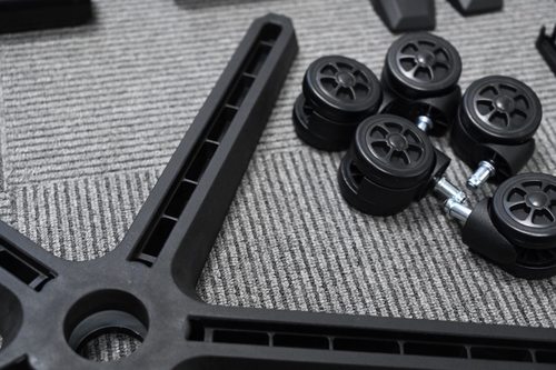 DXRACER迪锐克斯MASTER大师椅(商用版)的配件集成度较高,安装可以说是极为简便,用户只需要固定8颗螺丝(底座4颗+靠背4颗)即可轻松完成安装。不过,为了追求整体座椅的轻便性及减少按摩振动开启后的组件共振,MASTER大师椅(商用版)的底座采用了一次成型的高强度尼龙脚,五个脚搭配60mm全静音滚轮,提供流畅顺滑的移动体验。