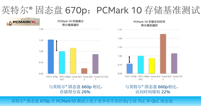 值得注意的是,英特尔针对新品低队列深度和混合工作负载进行了调优,实现了性能、成本和功耗的恰当平衡。过去十年来,英特尔一直专注于开发QLC技术,以满足当今PC存储对性能和容量的双重需求,包括顶级的存储以及高效管理海量数据的能力。