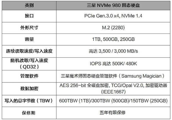 三星NVMe 980固态硬盘将于3月10日上午10点正式发售,建议零售价为:250GB售价399元,500GB售价519元,1TB售价999元。