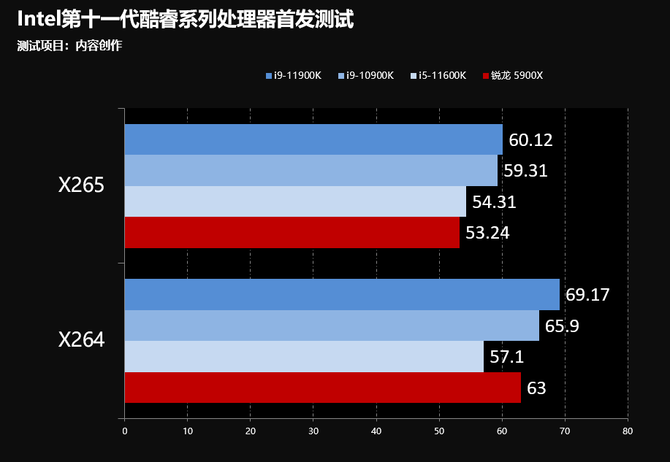 在内容创作测试结果方面,全新的Intel酷睿十一代处理器性能相对于上代有着明显的提升,对于视频和内容创作者来讲,能够有效提升整体工作效率和日常感受,加快我们的工作效率,让我们做到事半功倍。