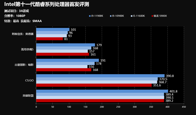 在游戏测试环节中,我们选择了市面上几款主流的游戏进行测试,显卡为NVIDIA RTX 3080,在1080P分辨率下,Intel十一代酷睿处理器的游戏性能表现优秀,这主要是得益于全新的内部架构和更高的主频表现,可以说Intel酷睿i9-11900K是目前最为优秀的桌面级游戏处理器。