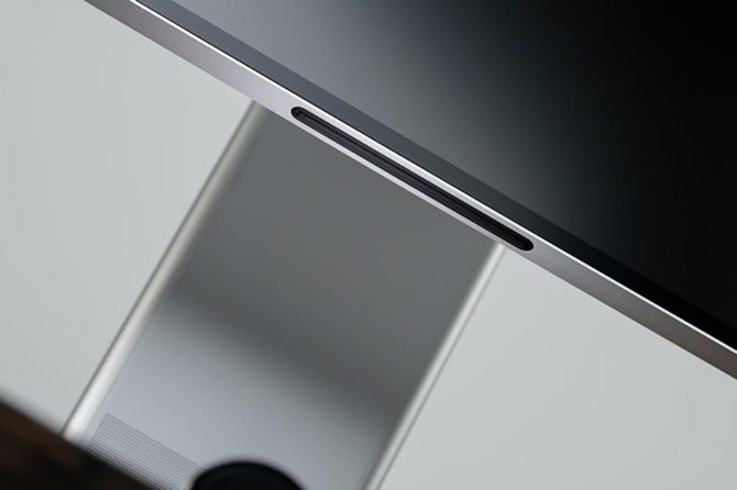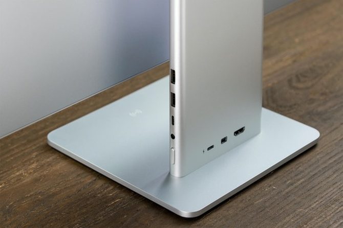为了达到最简约的形态,华为MateView将内部线路通过支架连到支架上。当然这种分离式升降理线结构对工艺要求极高,好处是主体没有任何接口,稍显不足就是屏幕不能进行旋转。
