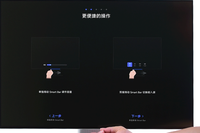 第一次开机,华为MateView会有一个简洁的操作说明。在没有连接设备前,会进入到显示器的内部系统,这里可以设置WIFI、选择显示输入源等。