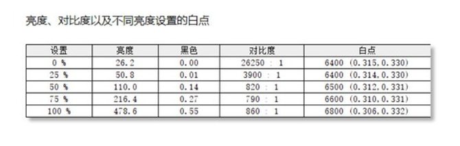 华为MateView在出厂时已经进行逐台校准,在DCI-P3色域下,色准平均△E<2;在sRGB色域下,色准平均△E<1,符合高色准专业显示器的水平。首先来看看屏幕的色调,在D65标准下测试华为MateView白点色温,五档亮度下色温表现较为一致。