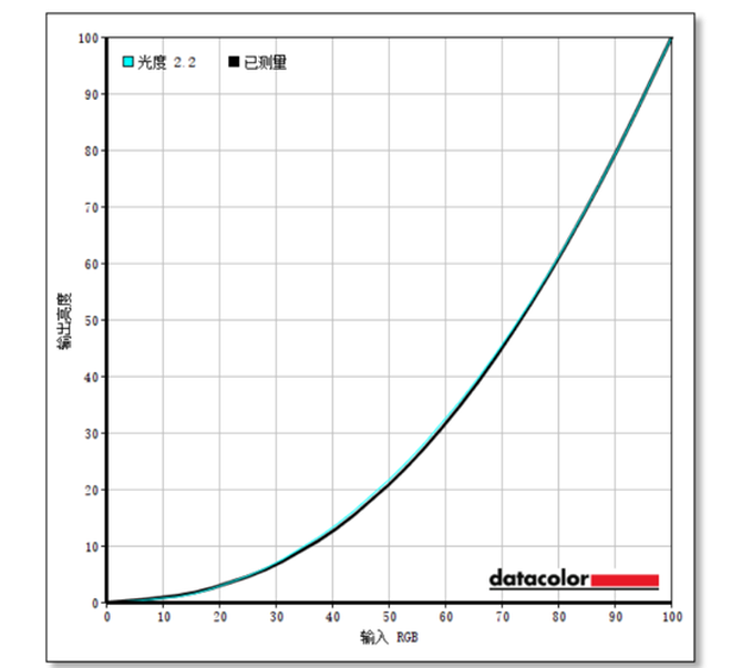 接着看看Gamma曲线测试,伽马曲线优化越好,意味着显示器在日常工作中能够越准确地重置屏幕亮度和对比度。对照Gamma2.2标准,华为MateView的曲线几乎与标准线重合,与清晰锐利的实现显示效果匹配。