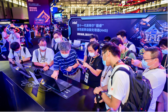 不仅如此,现场还展出了搭载了最新Intel高性能移动处理器的游戏笔记本电脑,H45芯片组电脑采用了最新的第11代酷睿移动芯片,超过5GHz的睿频,堪称游戏利器,对于追求游戏体验,并且有移动游戏需要的用户,H45处理器的游戏本就是一个最优的解决方案。