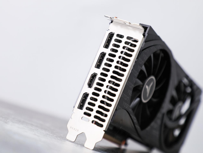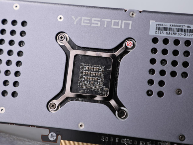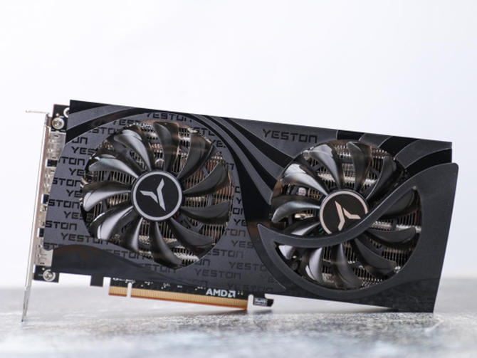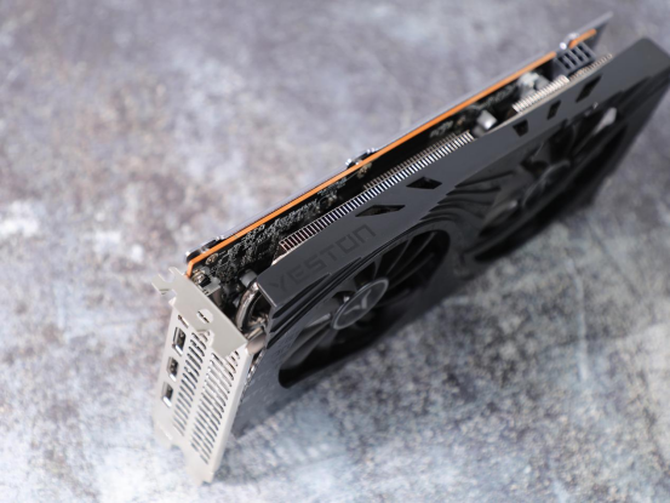 显卡的顶部还有“YESTON”的品牌标识,同时显卡使用了外接8pin的供电方式,基本450W以上的电源就能够轻松使用。