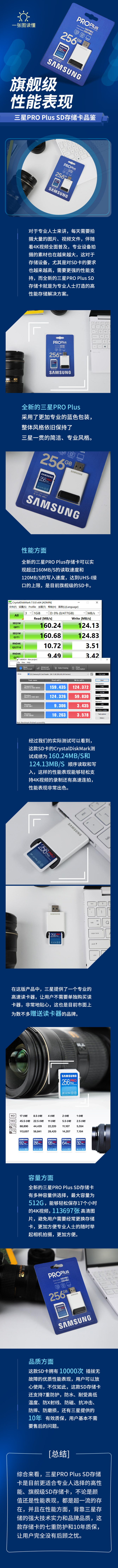 对于专业摄影爱好者来讲,一款性能更强的存储卡能够大幅提升我们的专业效率,并且还能够存储更多的图片、视频,与此同时,性能更强的存储卡可以轻松搞定4K视频拍摄,三星全新的PRO Plus SD存储卡就是这样一款专为设计师、摄影师群体推出的高性能、旗舰级SD卡新品,下面我们就通过一张图来看一下全新的三星PRO Plus SD存储卡究竟有哪些突出卖点吧。
