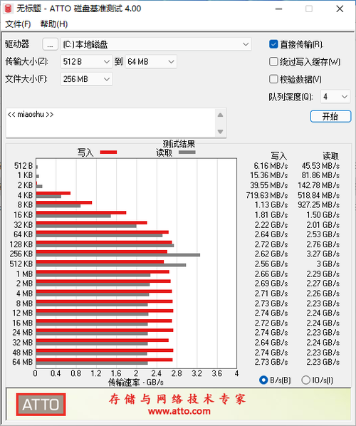 ATTO Disk测试项目中,西部数据SN570的顺序读取性能为2.23GB/S,写入成绩为2.73GB/S,性能表现优秀,相对上代产品有着明显的提升。