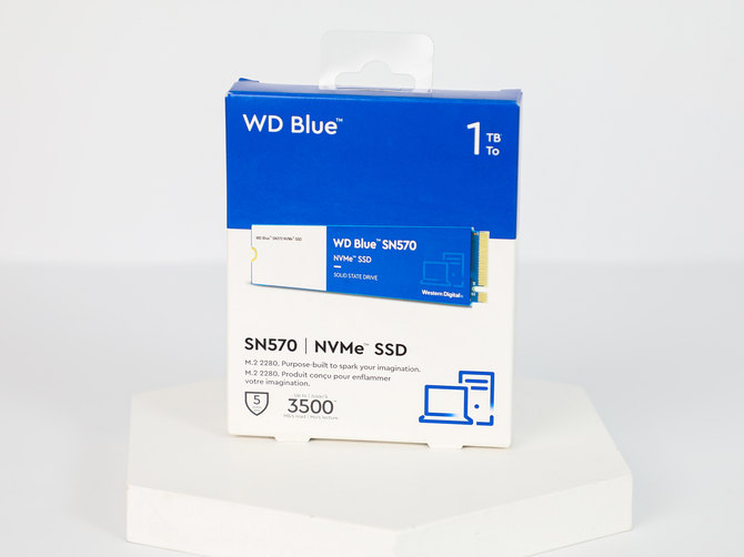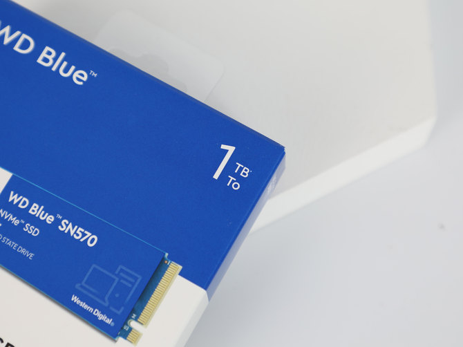包装方面,我们可以看到,WD Blue SN570 NVMe SSD全面升级,和以前大不相同,保持了这款固态硬盘的一贯水准,在右上角是硬盘的容量,本次我们拿到的是1TB容量的版本。
