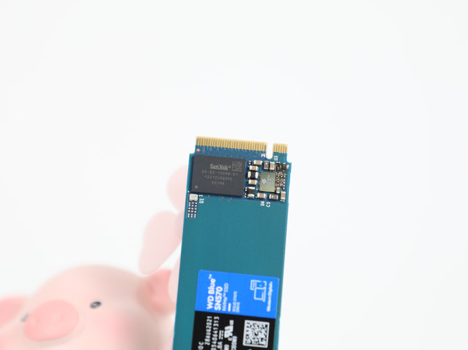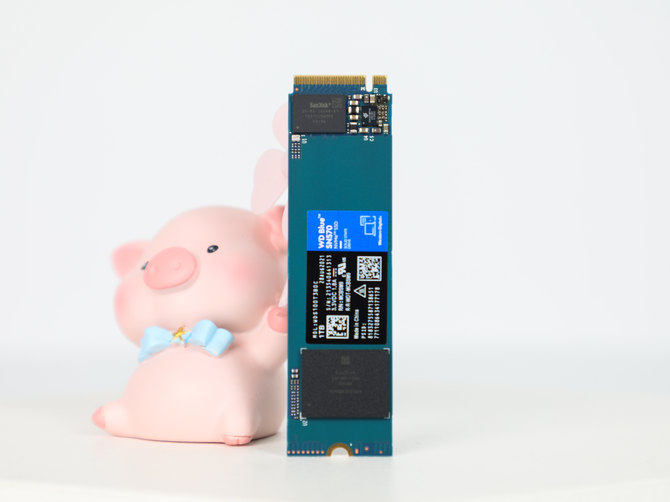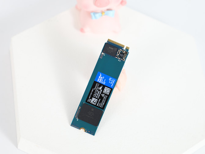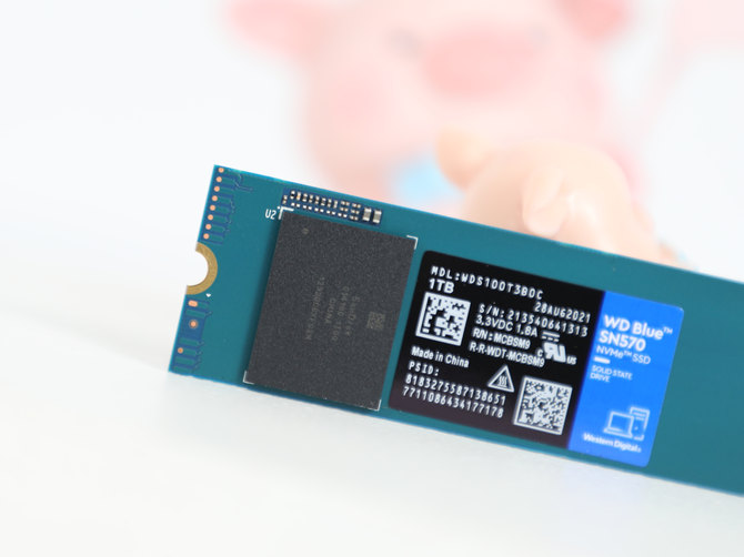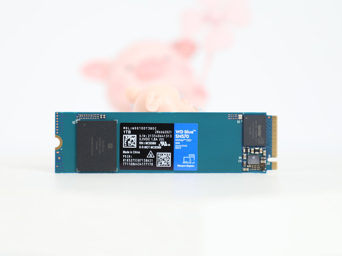 打开包装之后,我们就看到了SN570 NVMe SSD的本体了,采用了蓝青色的PCB板子,看上去非常有辨识度,一眼就能看出来是西部数据蓝盘系列。